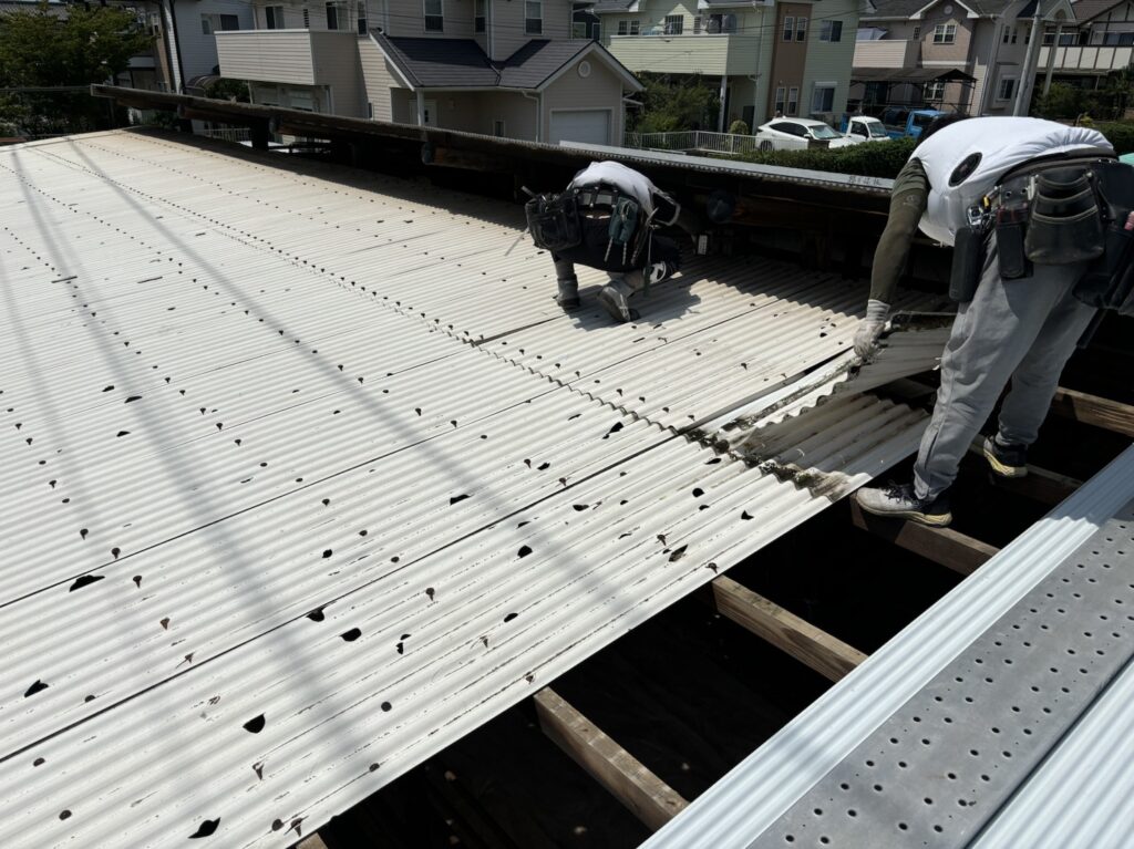R6.8月 伊勢崎市、ポリカ波板張替 2024年10月25日2024年10月25日 施工事例 0 Comments by sakurai 雹害にて穴が空いたポリカ波板屋根の張替を行いました Facebook X / Twitter Pinterest Previous Post Next Post